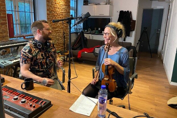 Es og Christine Enevold i studiet. Foto: Danmarks Underholdningsorkester.
