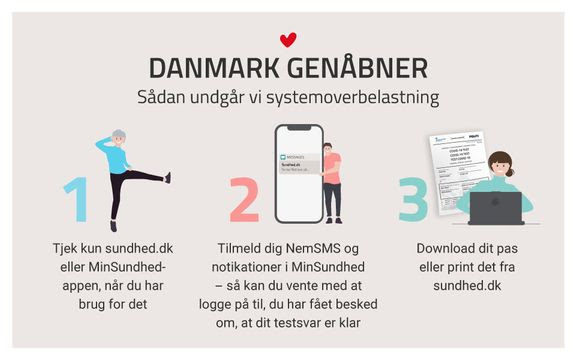 - Tilmeld dig NemSMS og notikationer i MinSundhed – så kan du vente med at logge på til, du har fået besked om, at dit testsvar er klar